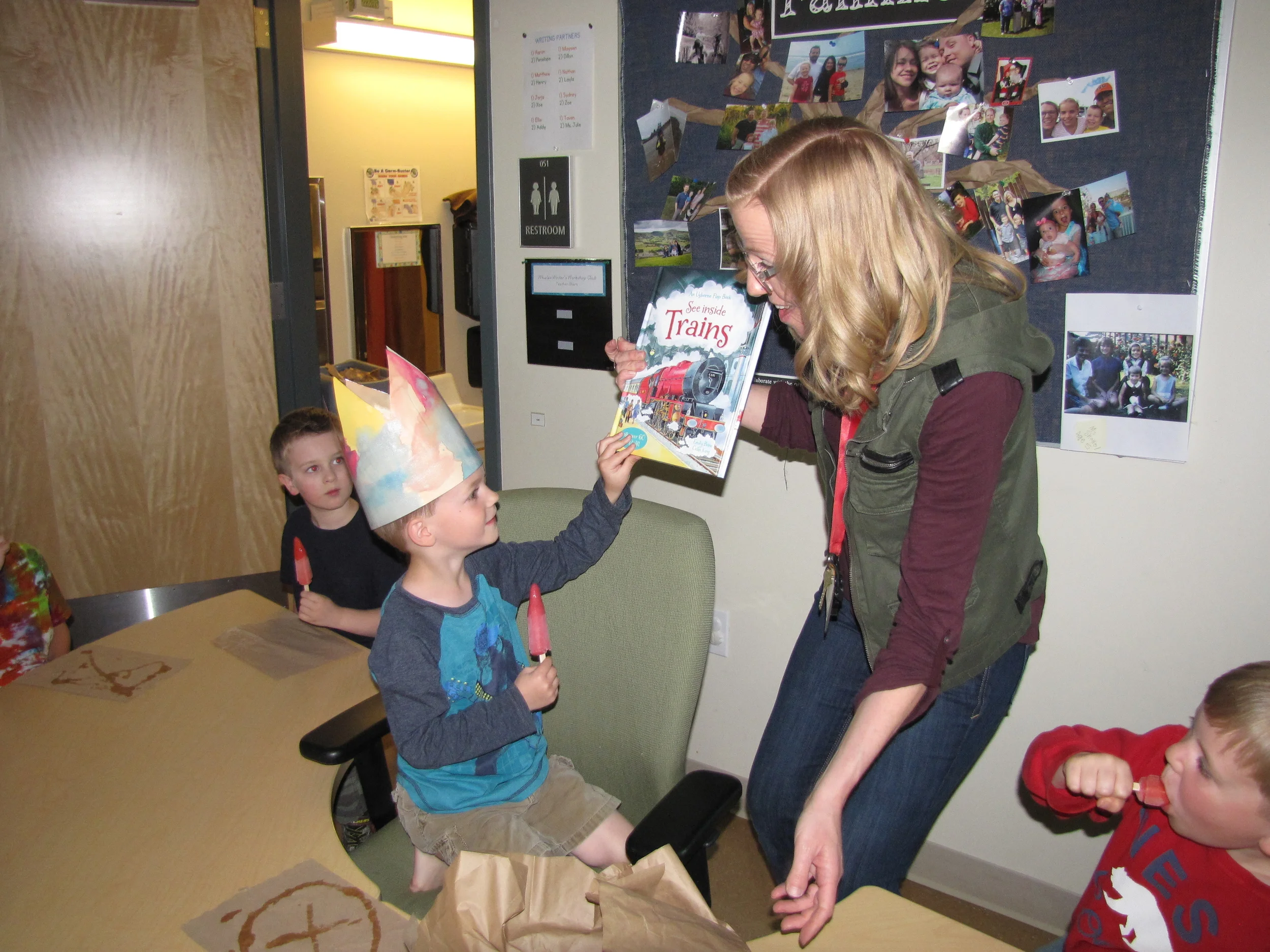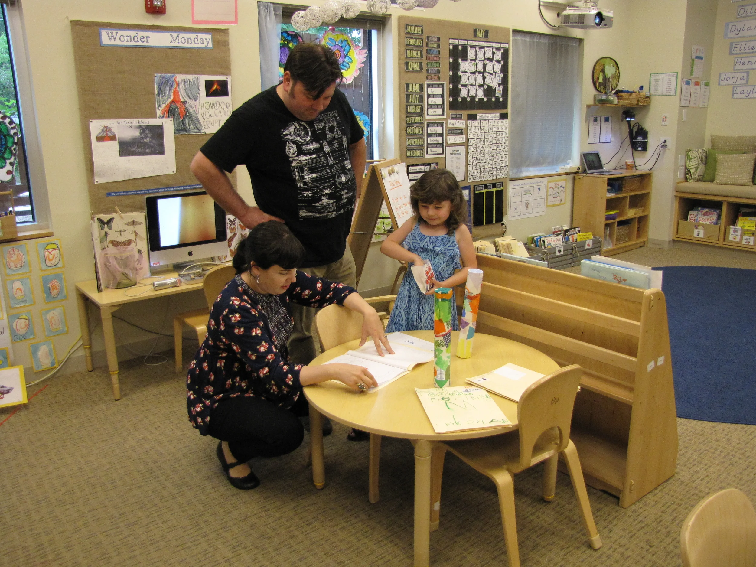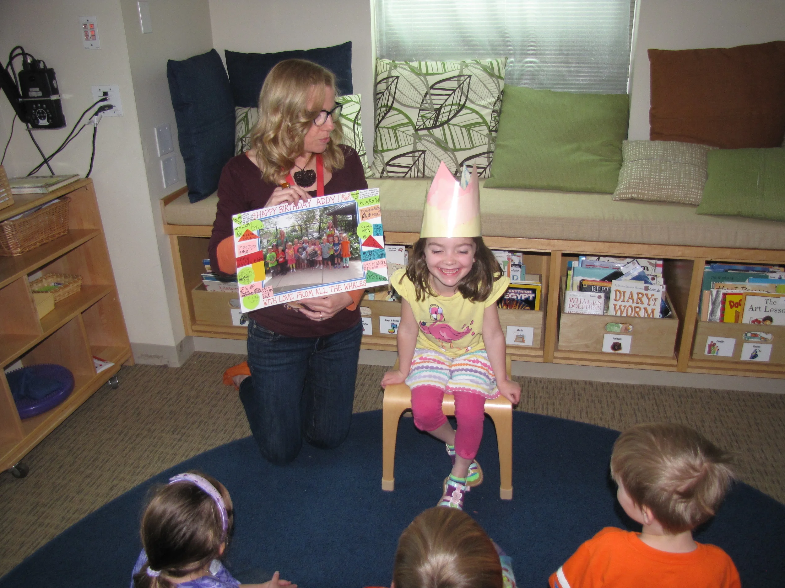 Our day ended with a family celebration. Parents joined us at carpet for a slideshow of our year together (you can find the slideshow by visiting the Watch & Listen tab on the homepage). Following the slideshow, each Whale was presented with a Memory Book. The books told the story of our year together, and all the learning, playing, wondering, exploring and growing we have done together. Happy Summer, 2015-2016 Whales - we will miss you!