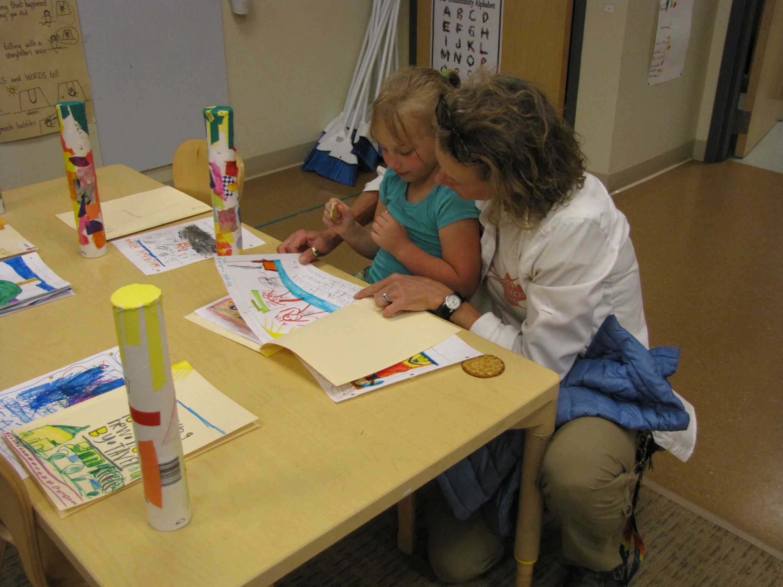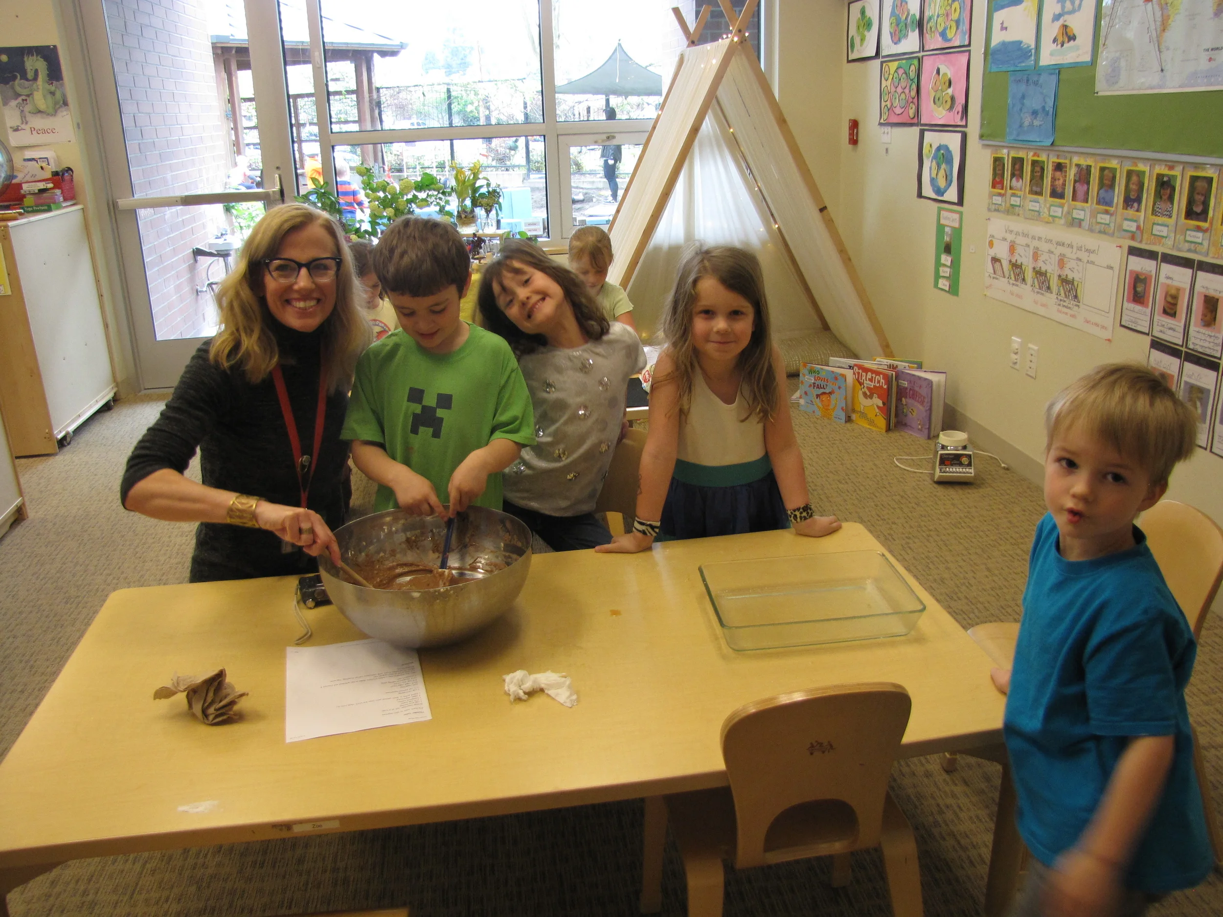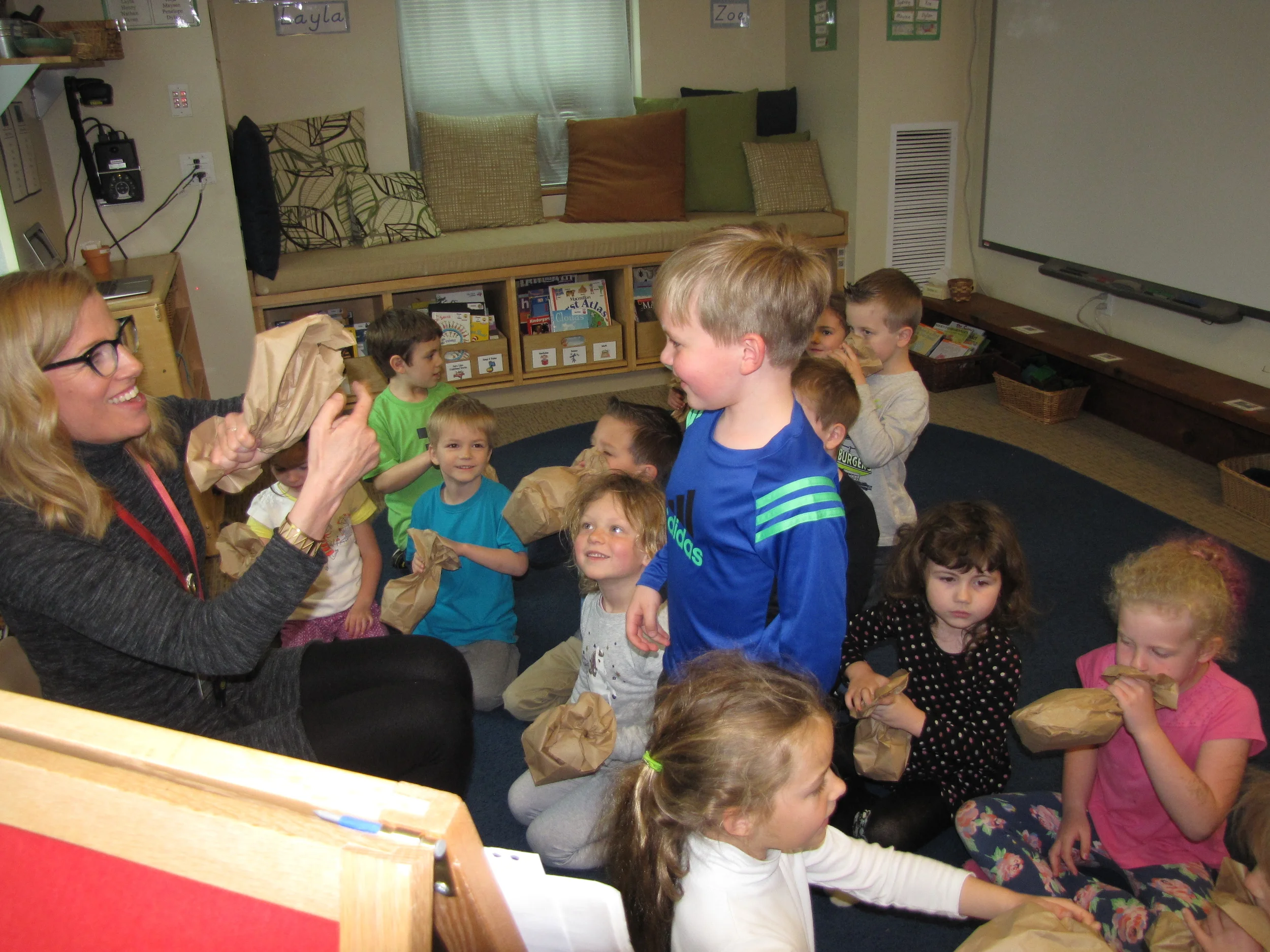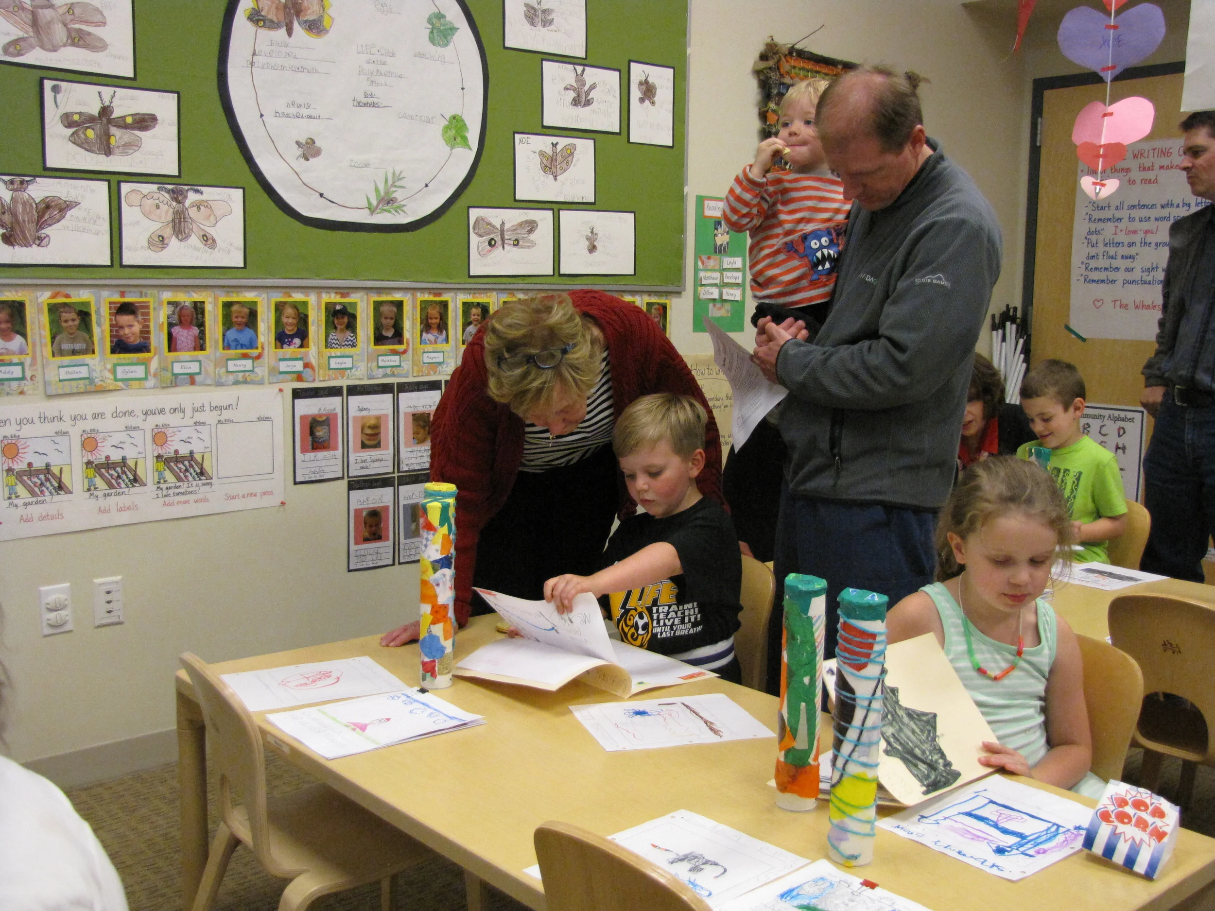 Our day ended with a family celebration. Parents joined us at carpet for a slideshow of our year together (you can find the slideshow by visiting the Watch & Listen tab on the homepage). Following the slideshow, each Whale was presented with a Memory Book. The books told the story of our year together, and all the learning, playing, wondering, exploring and growing we have done together. Happy Summer, 2015-2016 Whales - we will miss you!